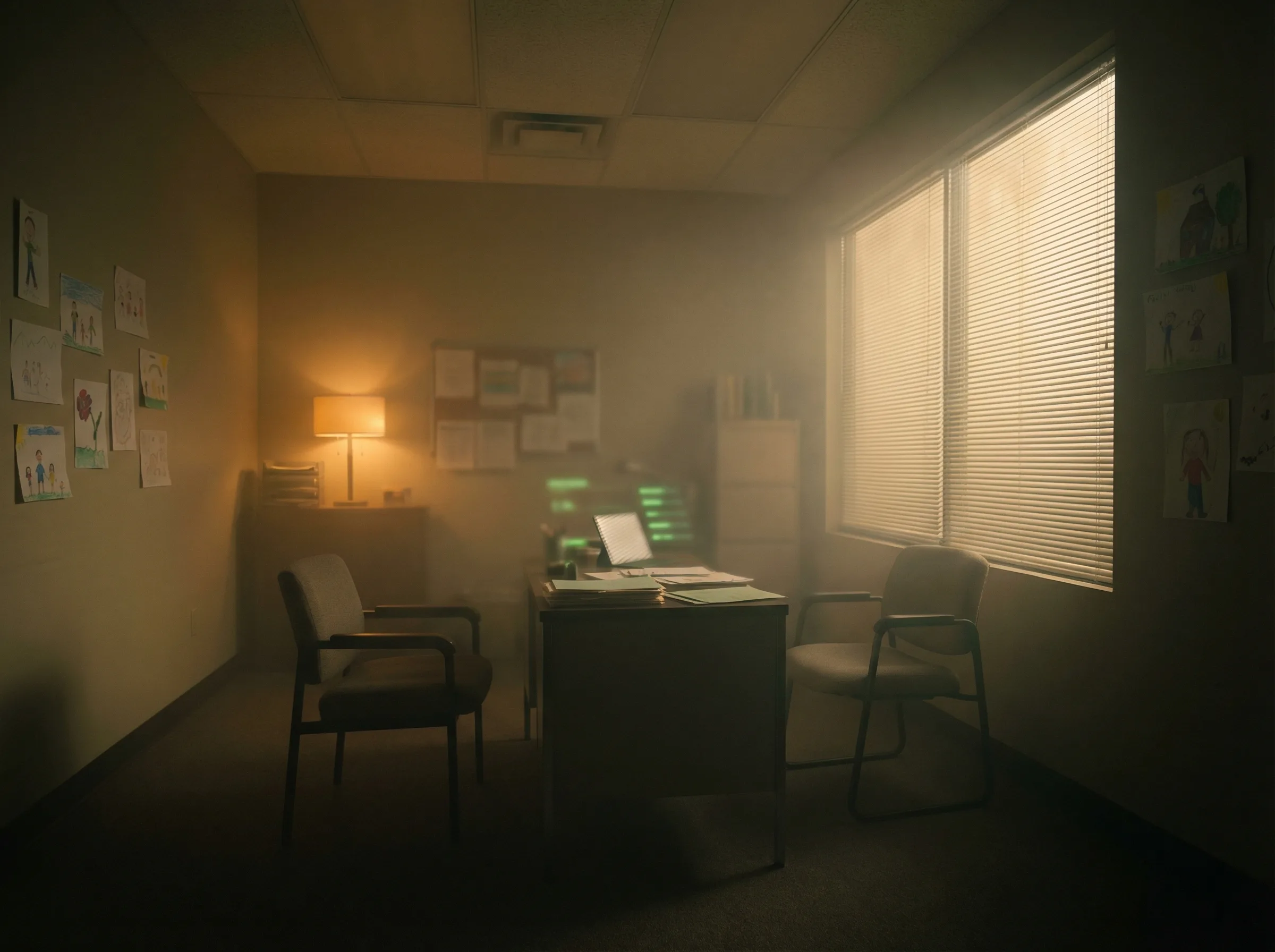 After school the building emptied in minutes. Torres sat alone in her office. The hallway lights switched to standby, dimming to amber. She could hear the ventilation system and nothing else.